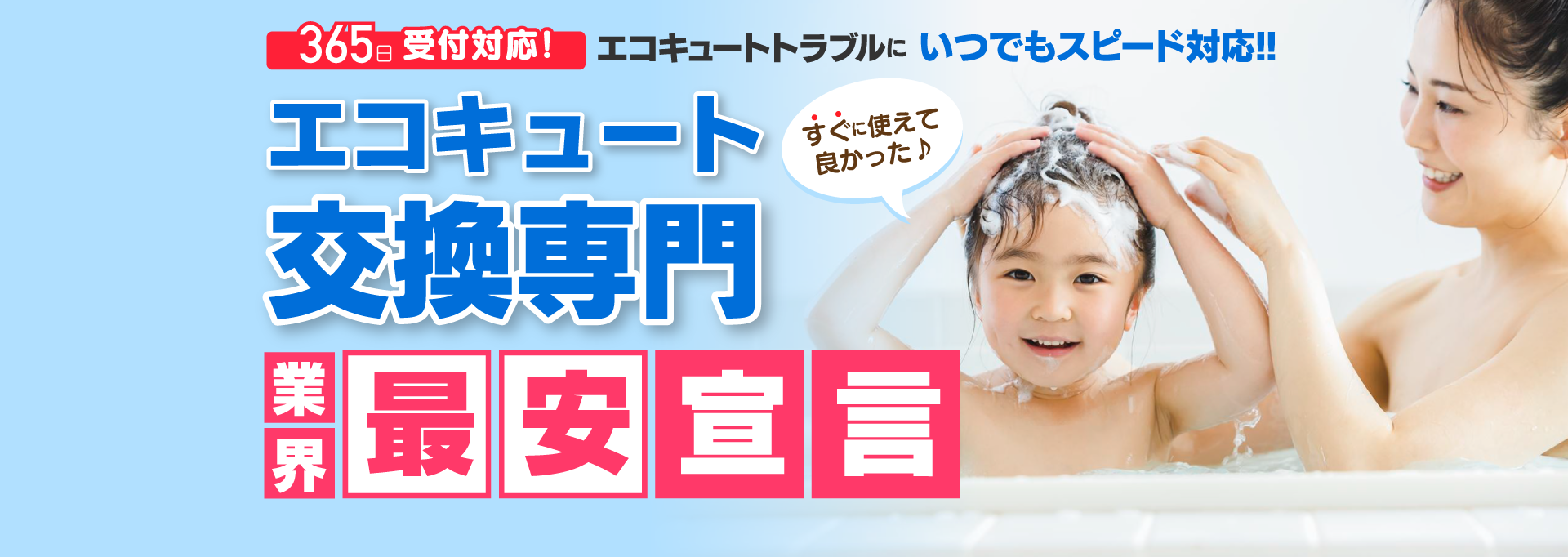 エコBath便(エコバス便)はエコキュート交換専門です。日曜・祝日にも対応!急ぎの翌日スピード工事もお任せ下さい。たくさんのエコキュート工事の実例をご紹介します。