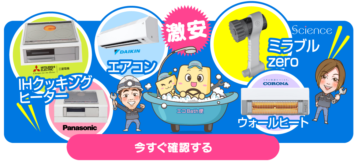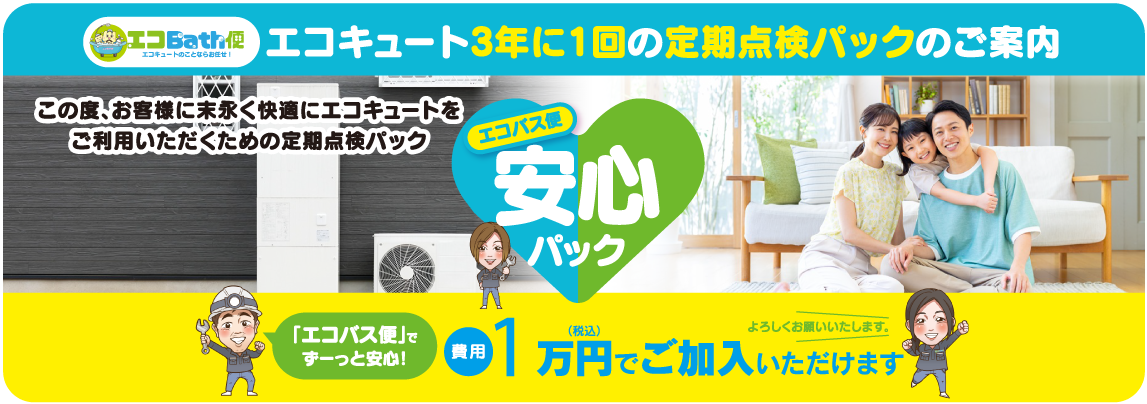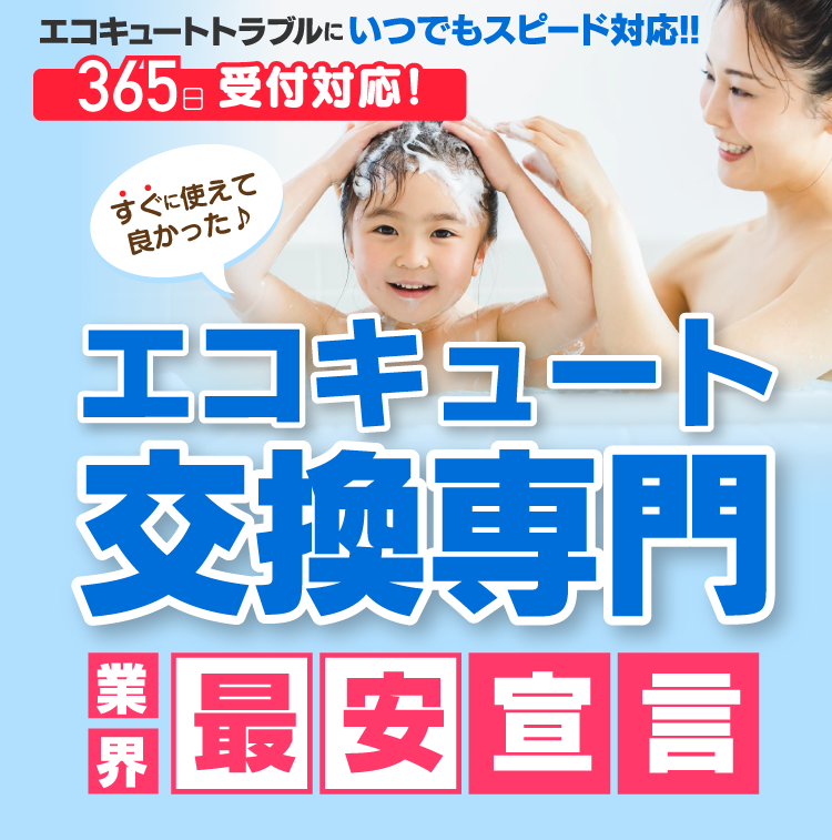 エコBath便(エコバス便)はエコキュート交換専門です。日曜・祝日にも対応!急ぎの翌日スピード工事もお任せ下さい。たくさんのエコキュート工事の実例をご紹介します。