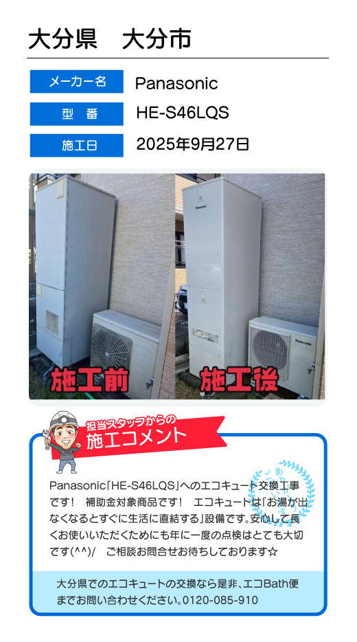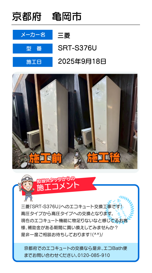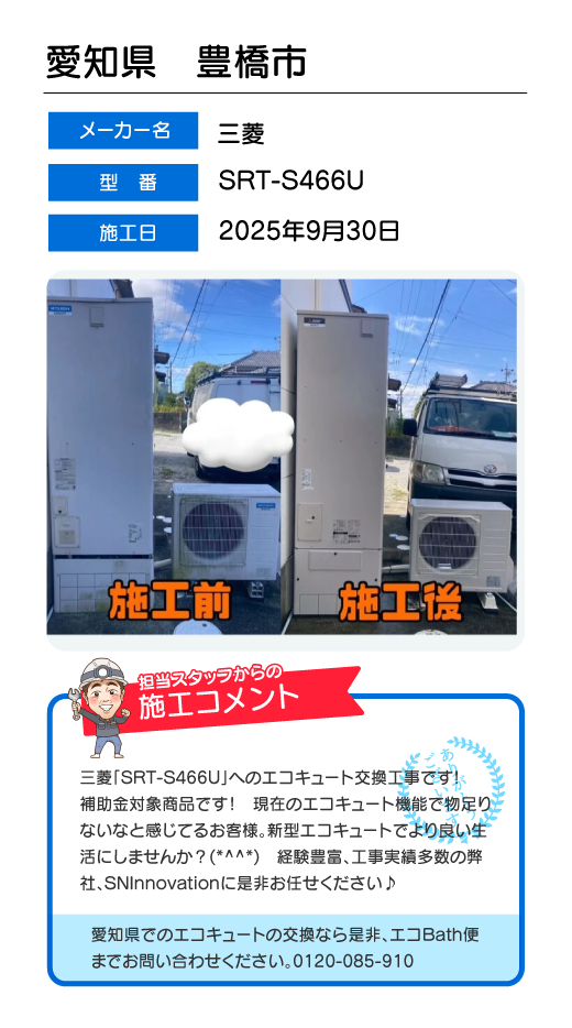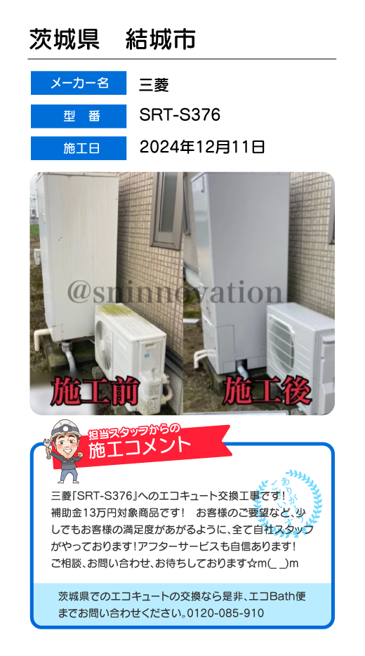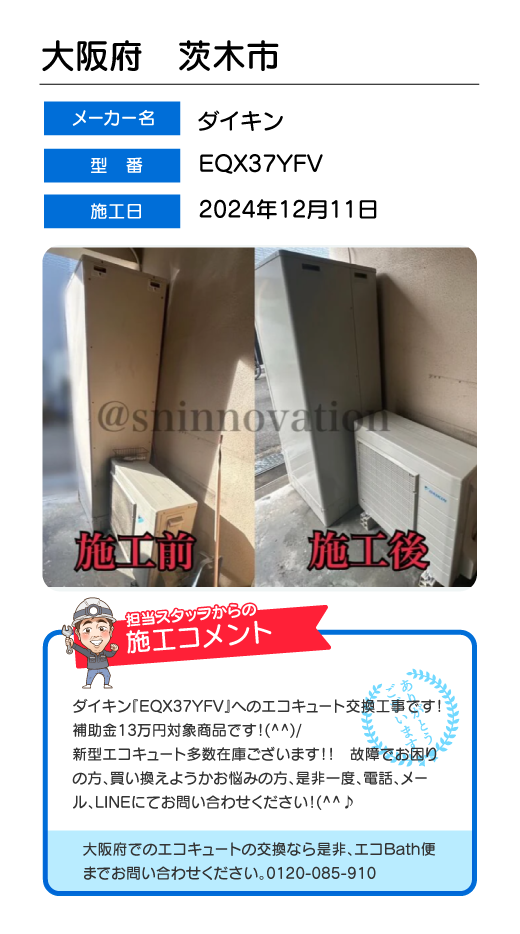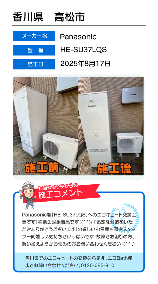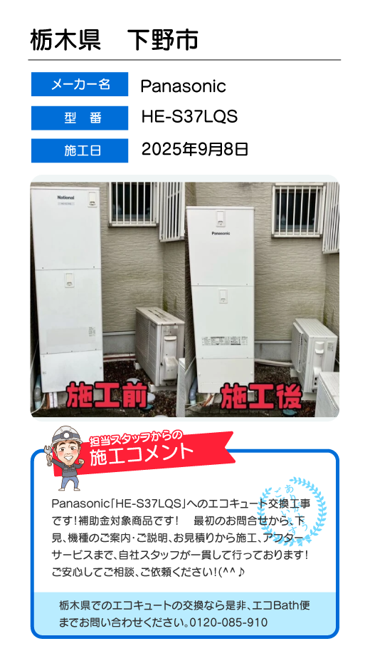 関東一円(東京/千葉/埼玉/神奈川/群馬/栃木/茨城)でのエコキュート工事はお任せ下さい!エコBath便(エコバス便)はエコキュート交換専門です。日曜・祝日にも対応!急ぎの翌日スピード工事もお任せ下さい。たくさんのエコキュート工事の実例をご紹介します。